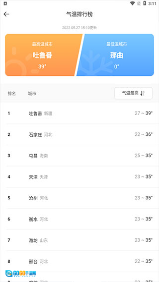 1. 知趣天气初次启动时会自动进行定位,用户也能够手动挑选地点。