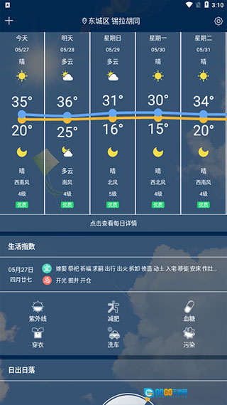 1.【实时天气】可查询当前所在位置的天气预报及空气质量指数;