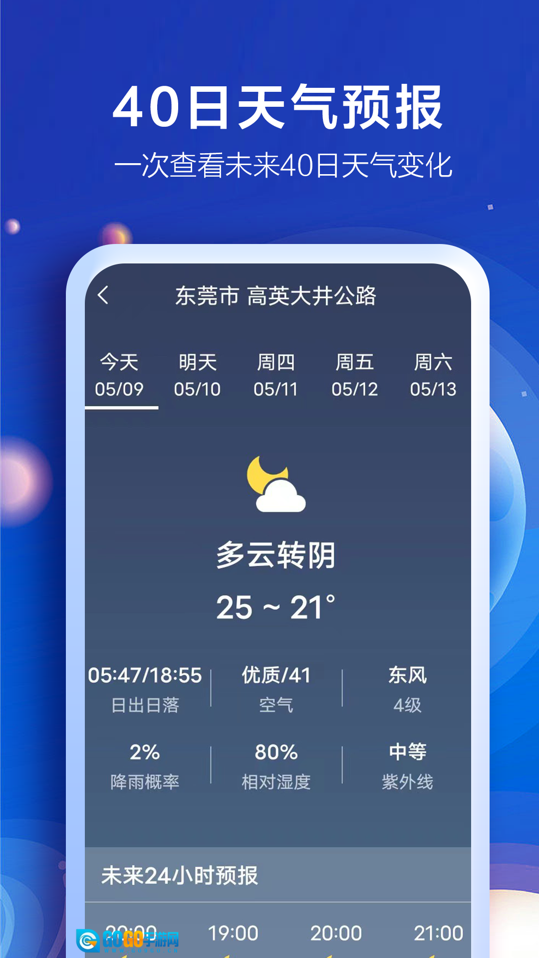 2.【逐小时天气】可查看24小时内的天气动态,助力提前防范温差影响。