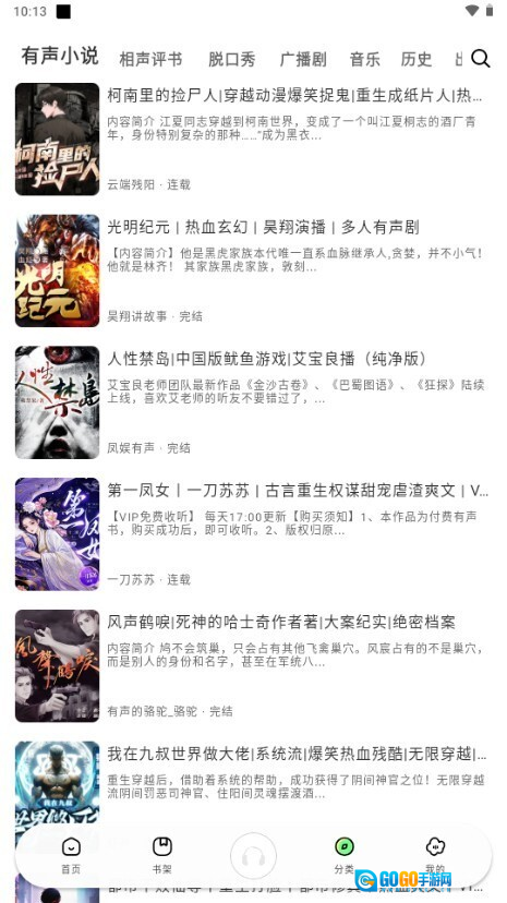 2、分类浏览:设置了详尽的分类标签,用户能够依据自身的兴趣与需求,便捷地浏览并挑选听书内容。