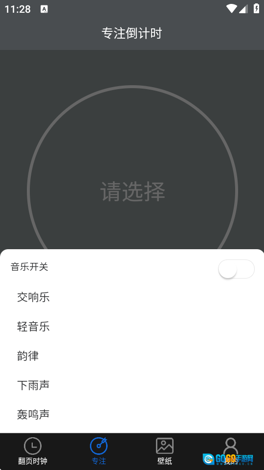 2.在专注界面先选择想听的音乐类型