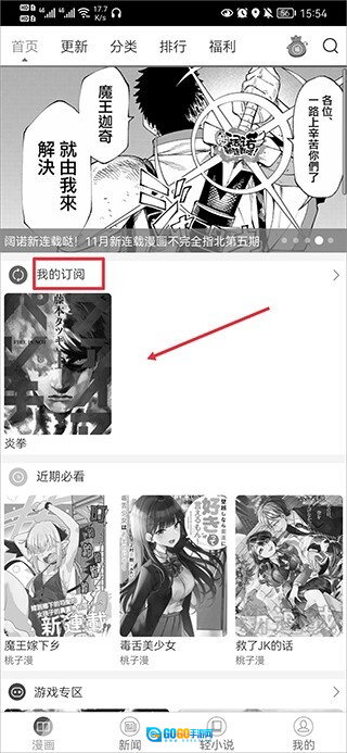 4、订阅完成后,回到动漫之家,接着在漫画界面里就能看到我订阅的漫画了。