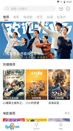 打开八戒影视后,在“首页”顶部的搜索框中输入影片名称,即可搜索想要观看的影片。