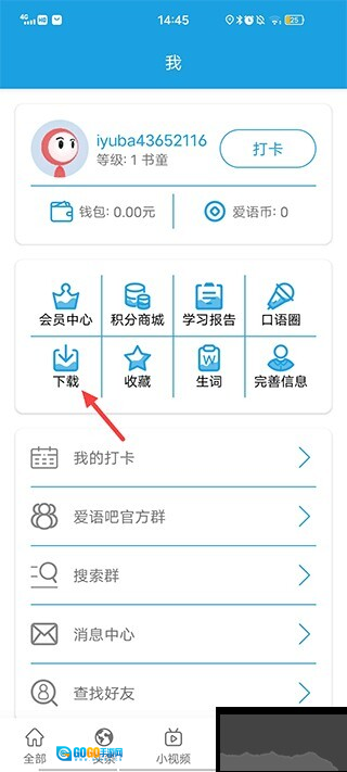 进入软件后,选择一个学习视频,点击右下角的符号,接着点击