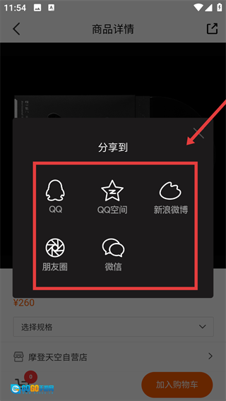 4、在分享弹窗里挑选对应的渠道(像QQ、微信这类),就能完成商品分享的操作。