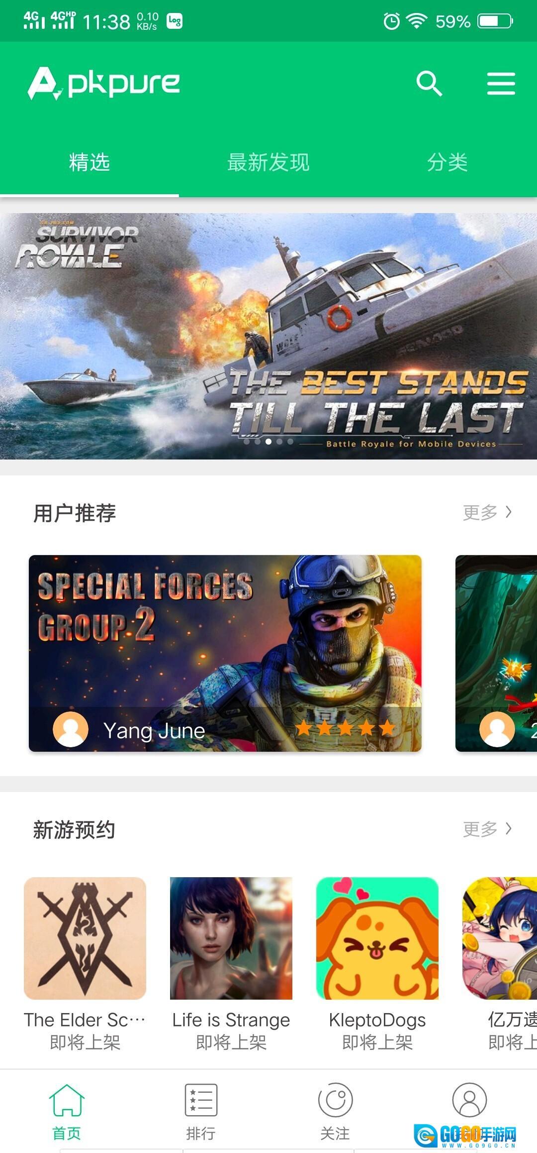 1、在本站把APKPure安装到自己的手机上,然后打开该应用。