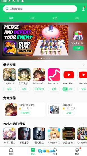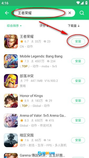 6、在顶部的搜索框中输入你需要的软件名称,像“王者荣耀”这样的例子。