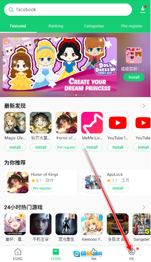 2、在主界面最底部的右侧位置点击“ME”选项,即可进入个人中心页面。