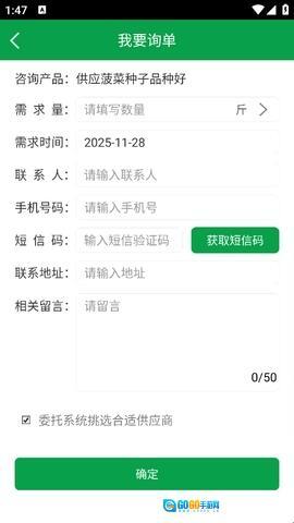 3、填写好需求量、需求时间、联系电话、地址、留言等信息,供货商就能与你取得联系。