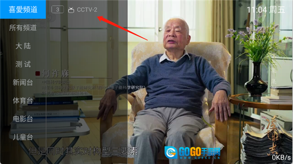 4、可以在左上角喜欢频道查看收藏的频道。