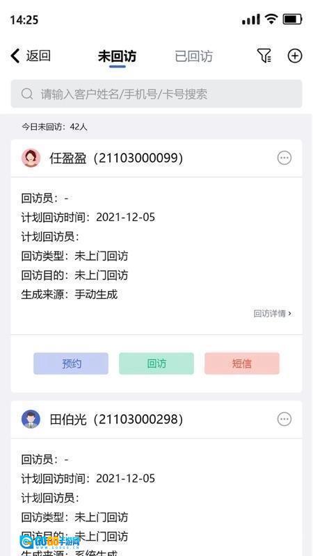 1、回访管理划分为未回访与已回访两类,可对计划进行调整,也能发送短信。
