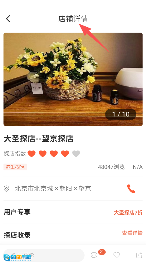 3、店铺详情页对地址、浏览量、优惠等信息进行整合,集中展示店铺的核心内容,方便大家全面了解本地的探店资源。