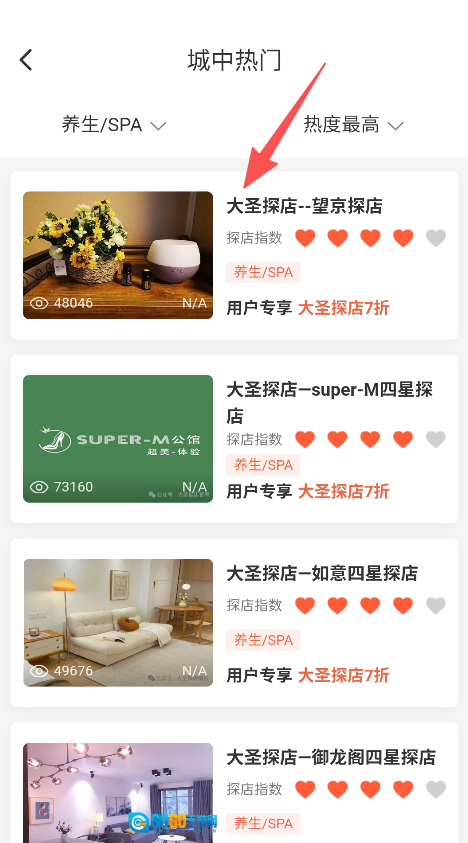 1、支持查看探店列表,用户可进入首页的城中热门板块,浏览养生/SPA类等本地探店信息列表。