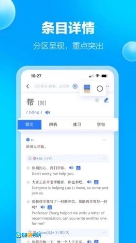 1.整合多部词典资源,可对词典优先级进行设置,具备智能检索功能,操作便捷高效,支持通过中英文关键词、拍照识别、手写输入、语音输入以及模糊查询等多种方式进行检索;