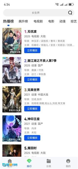 2、提供超多榜单分类,可以随时找到想看的类型,电视剧、电影、动漫、综艺任你选择