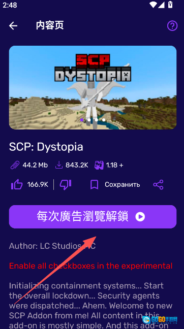 6、点击观看浏览广告页面解锁。