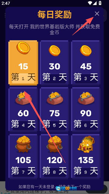4、领取每日签到奖励后,点击右上方的x关闭该界面,随后进入启动器首页。