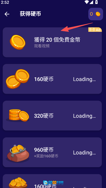 2、若想快速获取硬币,最直接的办法便是观看一定数量的广告。