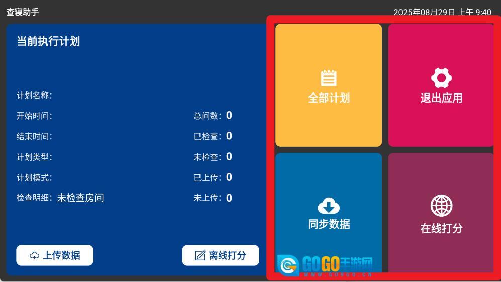 2、主界面支持查看当前执行计划,点击“全部计划”“同步数据”或“在线打分”按钮,即可快速进入相应功能区,方便进行管理与操作。
