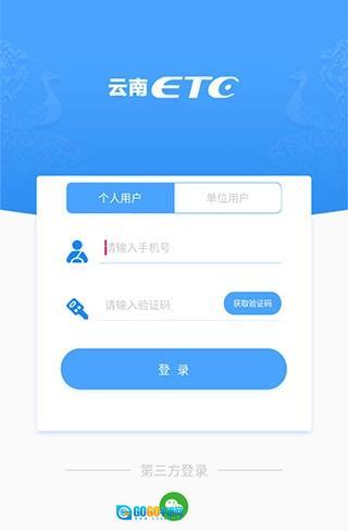1、先云南ETC服务,完成打开软件,根据自身情况选择个人用户登录还是单位用户登录,或者是选择微信登录。