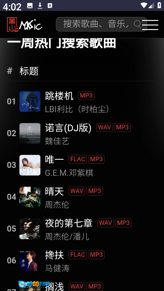 黑山音乐是一款能免费收听无损音质的音乐播放软件,它整合了各大平台的海量音乐资源,用户无需付费就能尽情聆听各类音乐。该软件覆盖了全球主流音乐资源,包含流行、古典、爵士、电子、独立音乐等多种风格,并且支持多语言内容。除了免费听无损音乐外,还有新发行歌曲、热门曲目、一周热搜榜单以及“随便听听”等板块供用户选择。用户可以根据热搜音乐或新曲上线情况在黑山音乐里挑选自己喜欢的歌曲,平台还设有热门标签,设计十分人性化;同时支持音乐搜索功能,兼容mp3、flac、wav等多种音乐格式,也提供dj版音乐,曲库资源相当丰富,喜欢听音乐的朋友不妨体验一下。