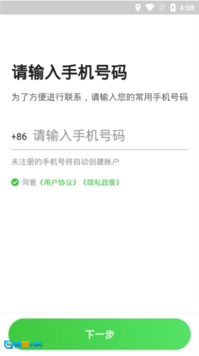 2、输入手机号,点击下一步;