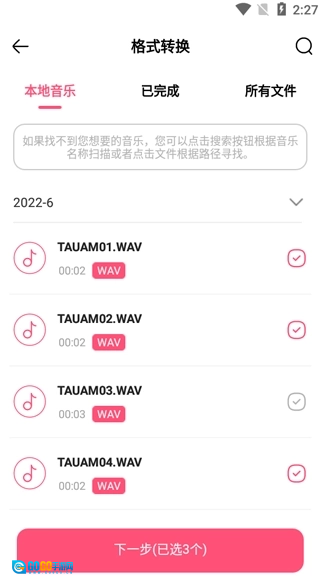 3、点开格式转换,选择你要转换的音乐;