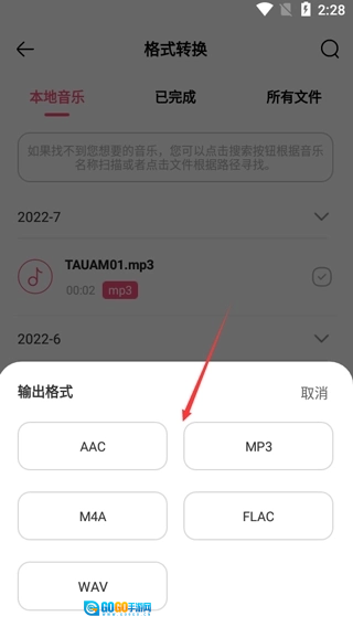 4、接下来就能够挑选输出格式了,像AAC、MP3、M4A、FLAC、WAV之类的都包含在内;