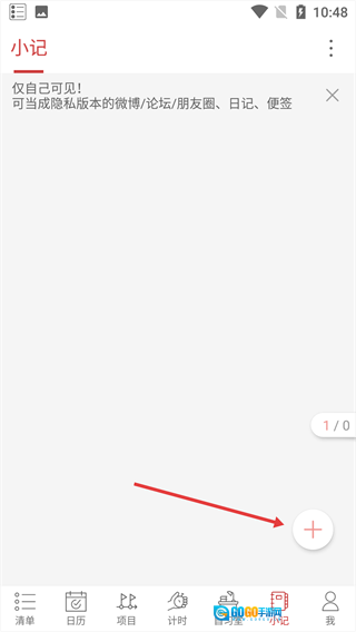 进入小记页面后,点击右下角的【+】按钮,即可进入小记编辑界面。