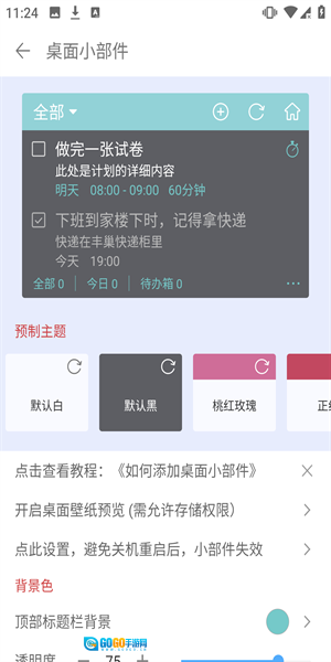 点击桌面的清单小部件,就能在这里设置几日计划,还可以通过设置主题、背景等方式,将其添加到桌面。
