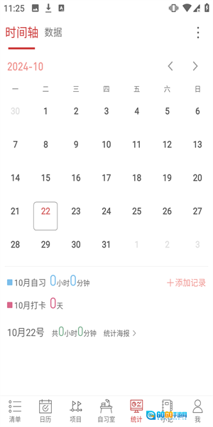 在统计板块,你能够记录每日自习时长与打卡时间。