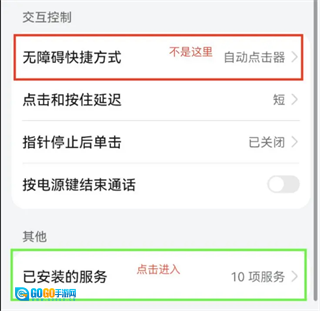 这里的交互控制并非无障碍快捷方式里的自动点击器,短点击和按住延迟功能已关闭。指针停止后会进行单次点击,按电源键可结束通话,其他点击操作能进入10项已安装的服务。