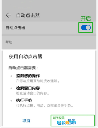 下滑找到自动点击器,点击赋予权限。