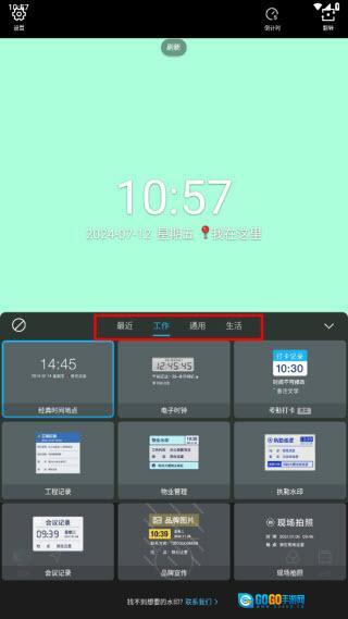 进入水印模板选择界面,我们能看到软件提供了生活中常见的各类场景模板,像电子时钟、考勤打卡、执勤水印、现场拍照等。这些不同场景的模板可以通过界面上方的标签栏进行选择。