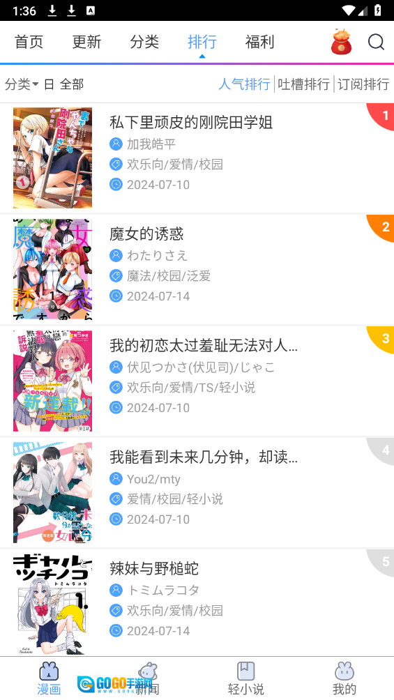 在“轻小说”功能栏中找到入口,点击进入后查找自己感兴趣的小说。