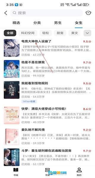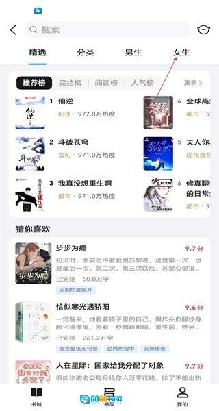 进入小说页面后,找到包含精选在内的各类分类标签,点击“女生”分类,即可切换至女生向小说列表。