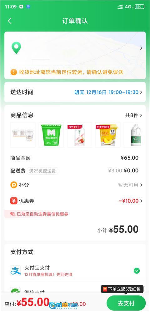 1、配送服务由超市提供,配送时段为早上七点四十五分至晚上十点三十分。