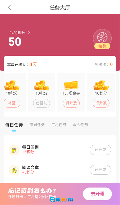 2、进入【赚积分】页面后,完成页面内的指定任务,就能获取对应的积分。