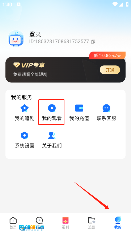 进入之后点击“我的”-“我的观看”。