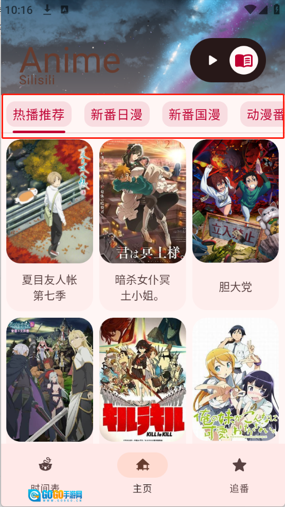 回到首页,可以在“追番”页面查看收藏的动漫。