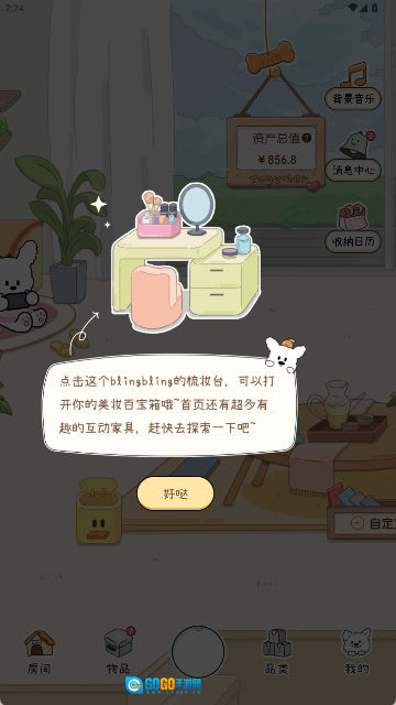 4.点击这个blingbling的梳妆台,就能开启你的美妆百宝箱啦~首页还有好多有趣的互动家具,快赶紧去探索一番吧。