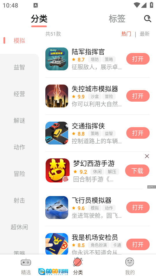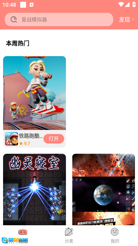 进入后,便能看到精选与分类板块里汇聚了海量的游戏资源。