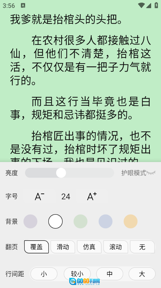 可以对阅读页面进行各项设置,比如字体大小、背景颜色和分辨率等。