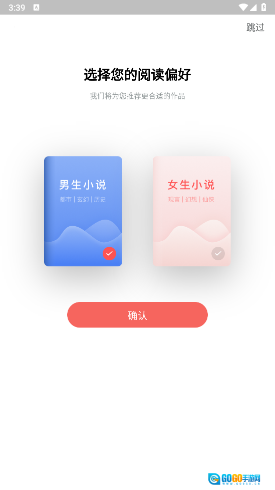 安装好书生搜索后,进入应用时选择性别,这样可以让系统为你推荐更贴合喜好的小说。