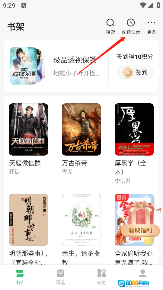 点击右上方的“阅读记录”。
