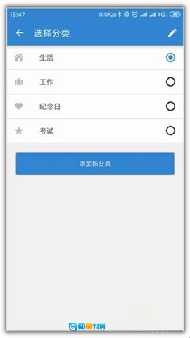 4. 点击分类选项,可将事项归类到某一类别中,便于管理多个事项。