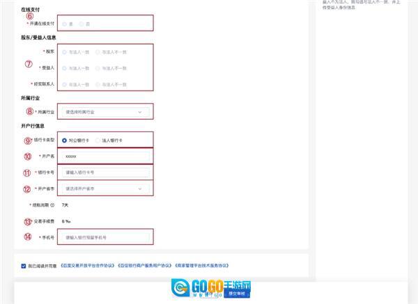 勾选相关协议后,方可提交审核。点击上一步会自动保存当前页面填写内容。