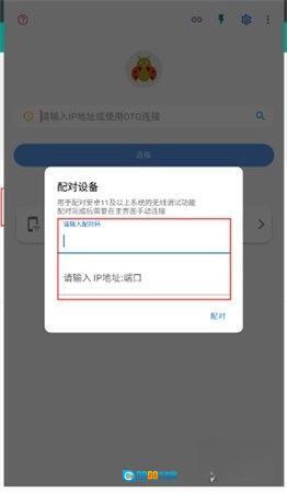 5、另外,你也可以选择点击“使用配对码配对设备”,然后在甲壳虫ADB助手中点击“连接按钮”,使用配对码进行连接。