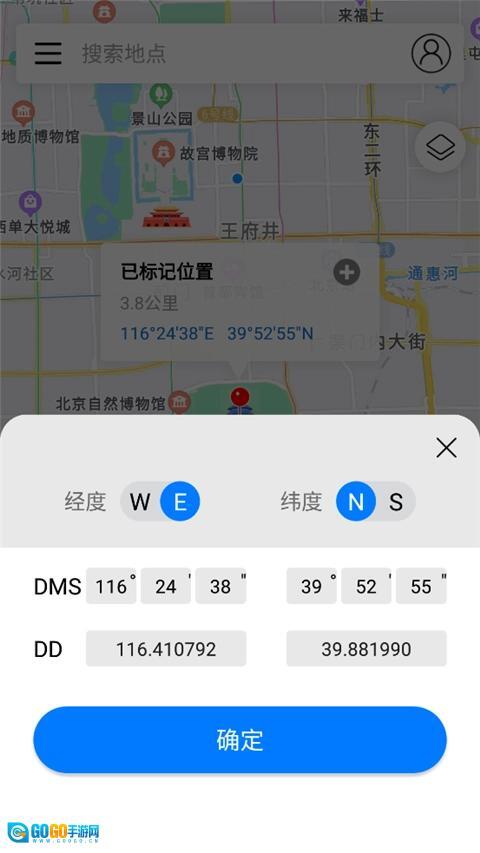 3、或是点击坐标上的经纬度区域,手动输入你想要定位的地点的经纬度数值;