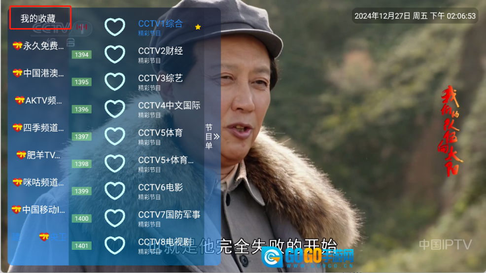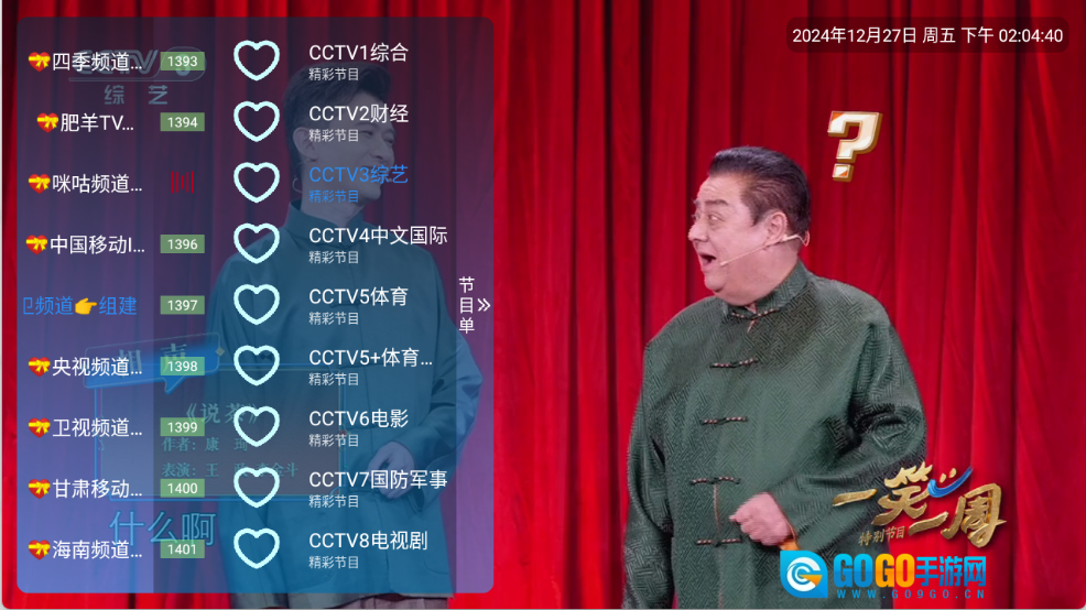 进入后,点击屏幕任意位置,左侧栏目便会显示出众多电视频道。